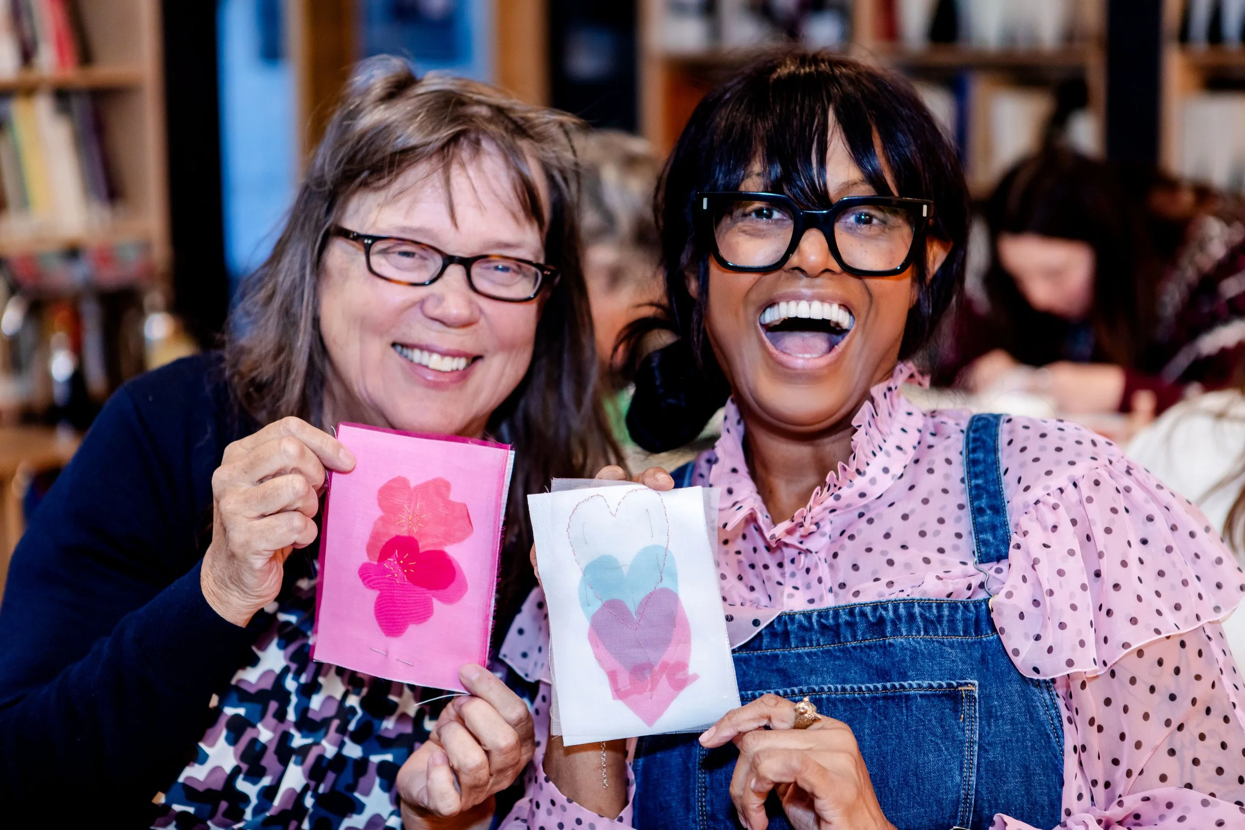 In June, July & August we’ll host three online sessions via Zoom. You can join anywhere from in the UK for guided group stitching, connection, and conversation. In October, once we’ve received all the rosettes, we’ll host in-person stitching sessions in London, where we’ll stitch them together into one giant collective quilt.