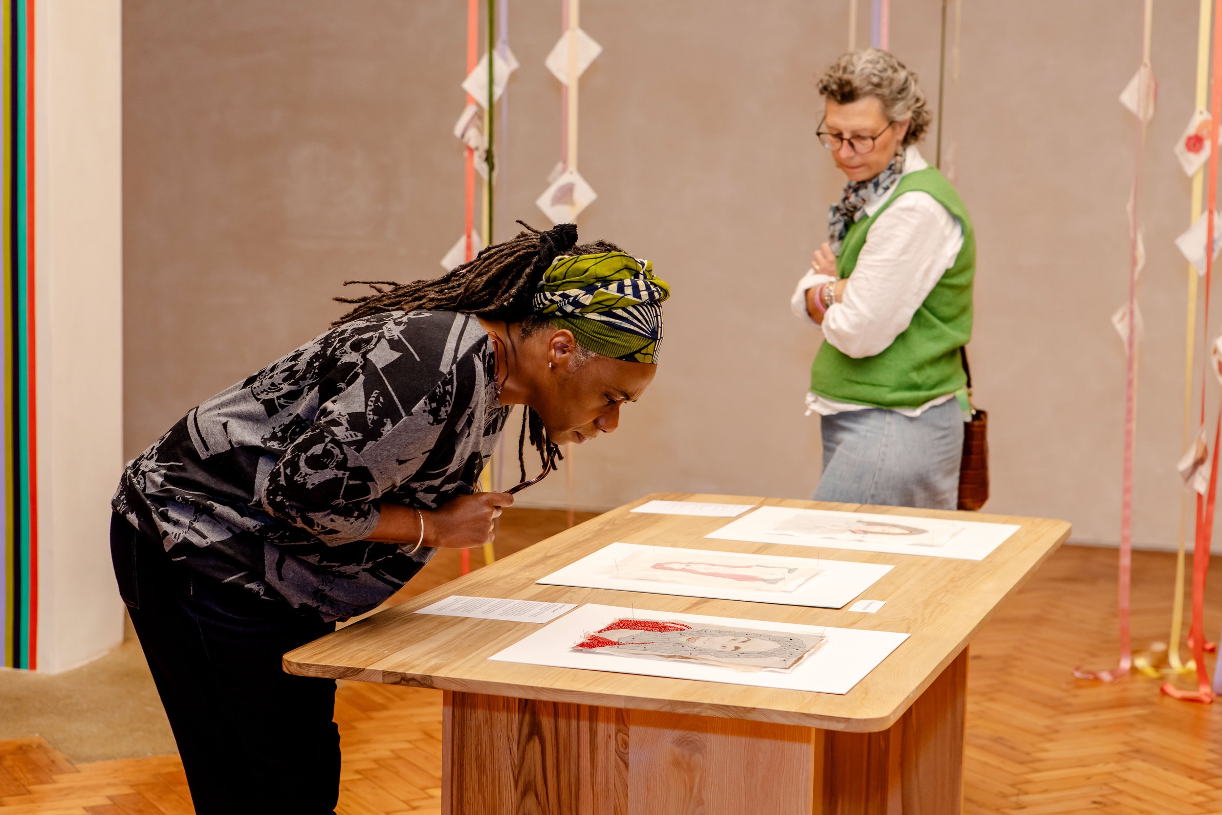She specialises in hand-stitched appliqué, layering and meticulously stab-stitching silk organza onto linen. Championing the value of making, she is drawn to the idea that by taking the time to slowly describe someone in stitch, you convey your admiration.