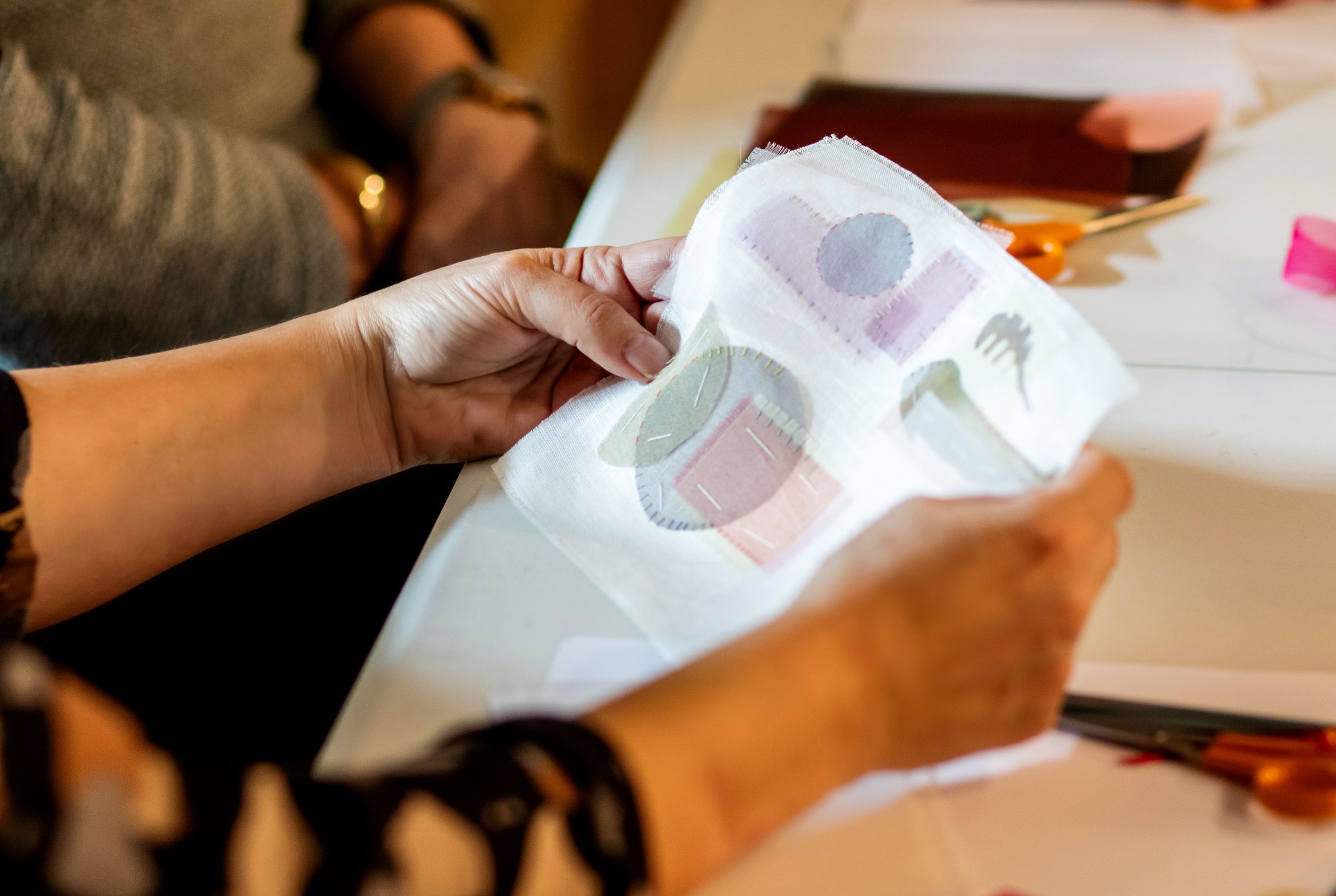 Hand stitching as a way to process, connect, and create, for women living with and beyond breast cancer.
