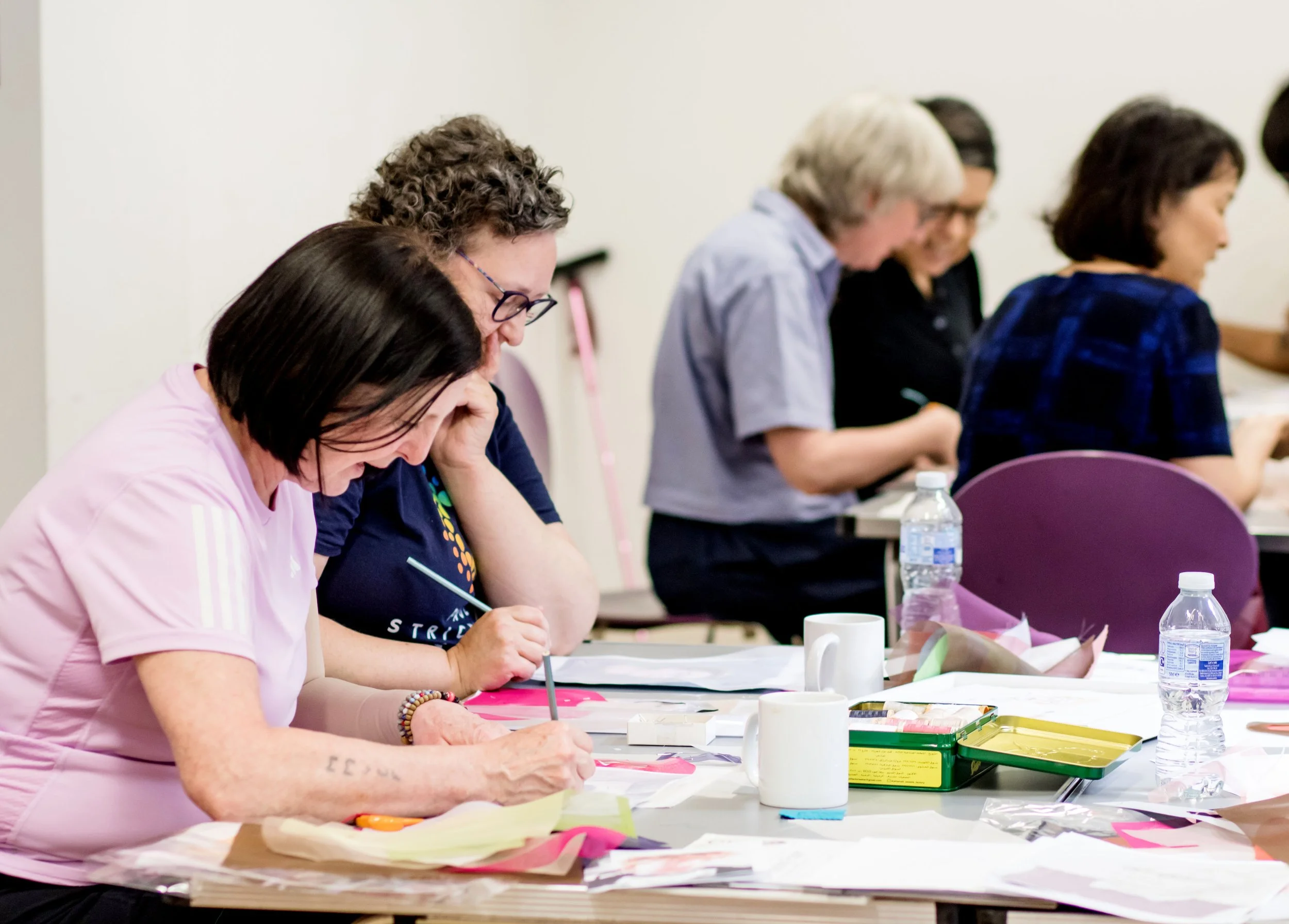 Every rosette in the quilt represents a woman who needed space to process, connect, and create. Your donation helps us make sure that space exists, and stays free.